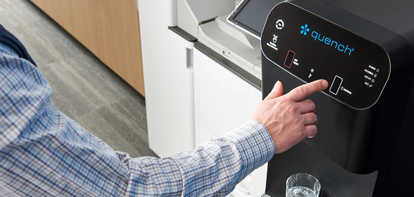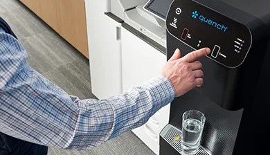 Les refroidisseurs d’eau sans bouteille de Culligan Quench peuvent hydrater l’ensemble de votre personnel, tout en vous faisant économiser de l’argent et en réduisant votre empreinte environnementale.