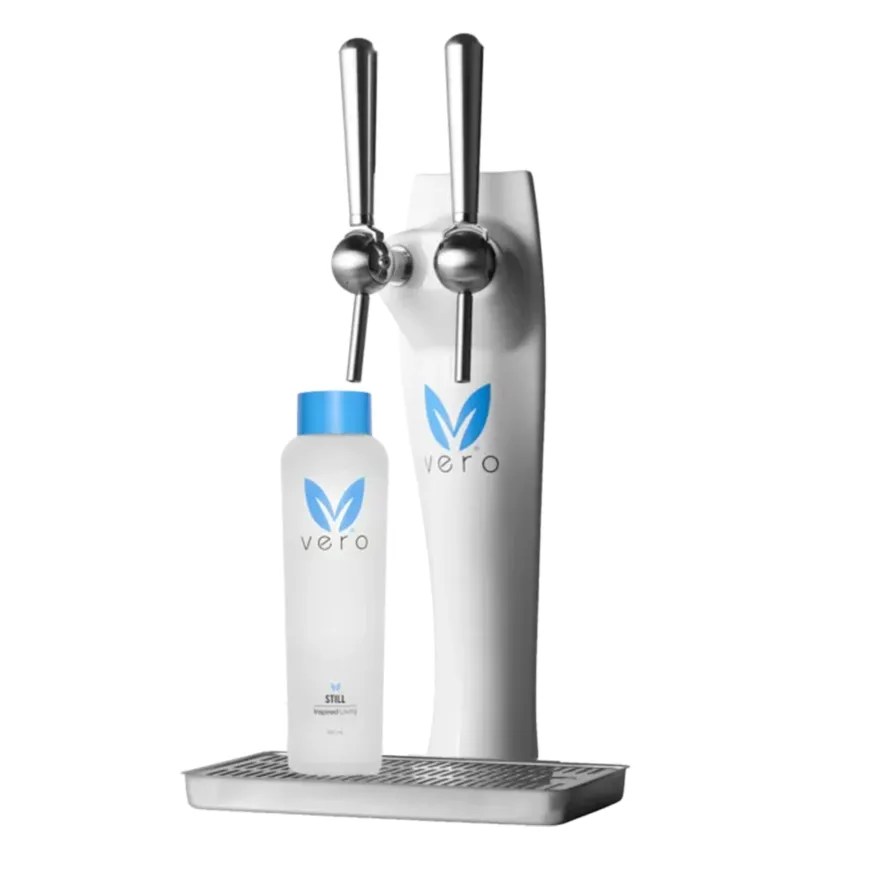• Hauteur de distribution de 28 cm pour accueillir la bouteille en verre réutilisable exclusive Vero.